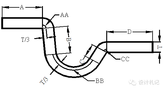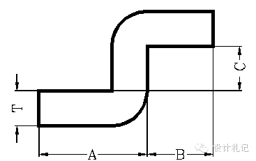 (1)當(dāng)C5時(shí),一般分兩次成型,按兩個(gè)90°折彎計(jì)算.(要考慮到折彎沖子的強(qiáng)度)