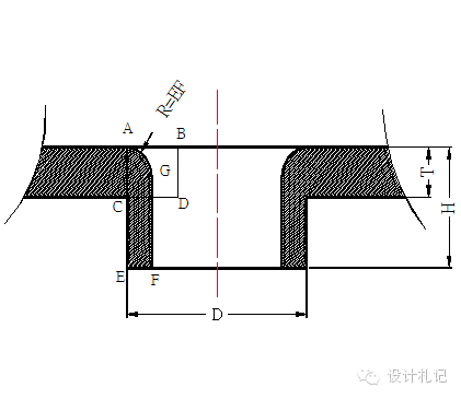 一般抽孔高度不深取H=3P(P為螺紋距離),R=EF見圖